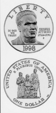 Obverse Description: The obverse of the silver dollar, designed by Mint Sculptor/Engraver John Mercanti, is a portrait of Crispus Attucks.