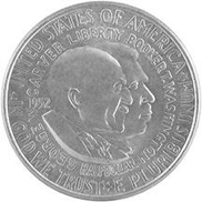 This silver coin was produced from 1951 to 1954. Proceeds were used to establish a memorial park in Missouri for George Washington Carver. The Carver-Washington half dollar was the last of the pre-modern commemorative coin programs.
