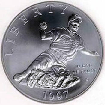 1997 – Jackie Robinson 50th Anniversary $5.00 Gold Coin Proof