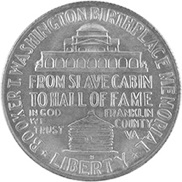 Booker T Washington ObverseObverse Description: The bust of Booker T. Washington in the center of the coin. The date at the left. Around the rim, “Booker T. Washington” and “United States of America – Half Dollar – E. Pluribus Unum”.