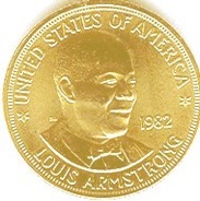 Obverse Description: The head of Louis Armstrong with his name below his bust.