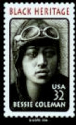 Bessie Coleman was the first Black to receive a pilot’s license, which she earned in France after being denied entry into flight schools in the United States. She returned to the United States and performed in air shows as a stunt flyer. Her goal was to establish a flight school for Blacks, but she died tragically in a plane crash on April 30, 1926, before she could realize her dream. This stamp was issued April 27, 1995.