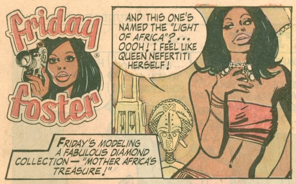 In 1972, Dell created a one-of-a-kind Friday Foster comic book edition, as no further comics were issued for this character. In the comic, Friday Foster is an assistant to world famous fashion photographer Shawn North.