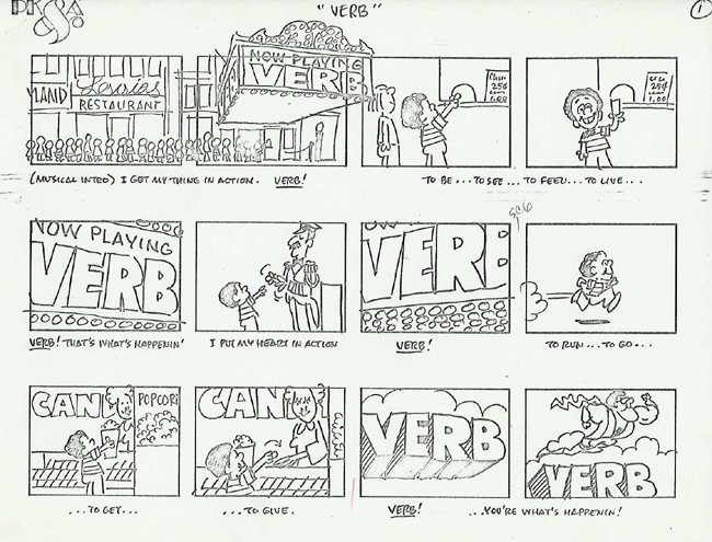 Verb! was the first Black male superhero character to appear in a cartoon series and the second Schoolhouse Rock episode to feature Black characters. Verb! That’s What’s Happening was a part of Grammar Rock!, premiered in 1974 and ran through 1986 on ABC.