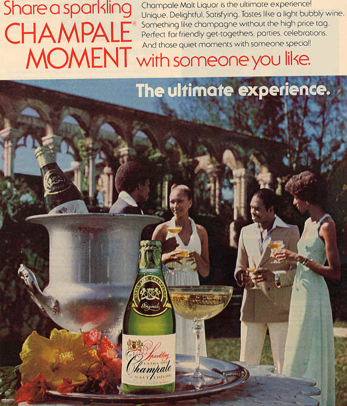 What was so cool and hip about Sparkling Champale and Pink Champale was the ads. The ads that ran in Ebony magazine were sexy and featured sexy looking Black folks drinking this malt liquor. You thought it was Champagne and you had to have some because it was cheap.