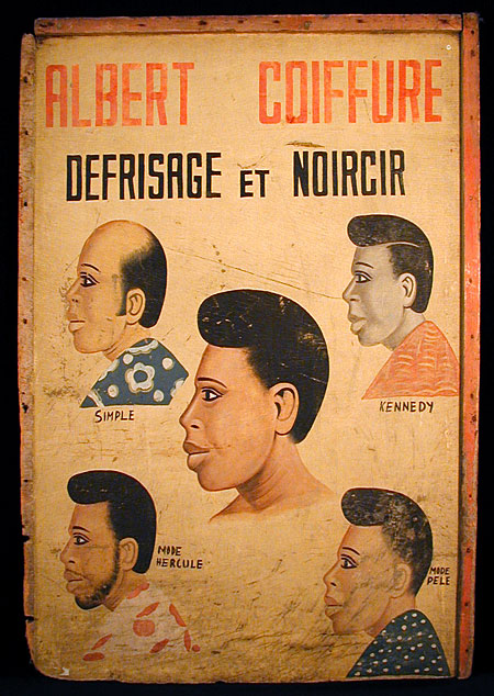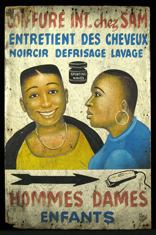 The Hairdresser and Barbershop Signs of Africa are original boards from barbershops and hair-salons in the Ivory Coast, Ghana, Burkina Faso and Tofo dating from the 1970-ies to the present day.