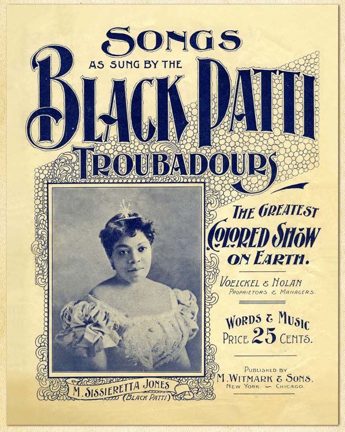 Sissieretta Jones aka Black Patti (1869-1933) was a pioneer of Black operatic singing, and she paved the way for a long list of black opera singers to follow, including Marian Anderson, Roland Hayes, Leontyne Price, and Grace Bumbry, among others.