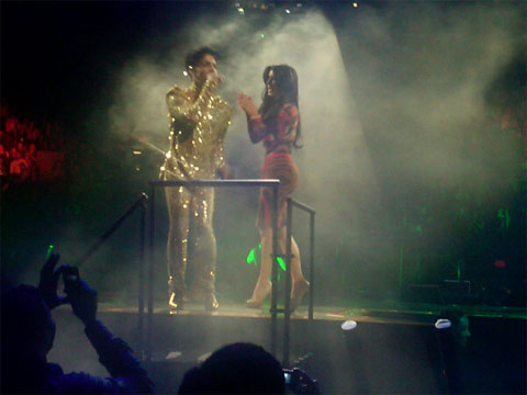 Back in 2008, he did a benefit concert on the rooftop of the Hotel Gansevoort for about 250 people. The shows celebrated the release of the multimedia book, “21 Nights,” which chronicled his 21-Night run at the O2 arena in London in 2007. The photo book also includes a CD of exclusive material, and proceeds from the launch party were to go to two charities, Love 4 One Another Charities and Urban Farming (both with connections to Prince’s beloved hometown of Minneapolis). But I digress, Cee-Lo Green opened for his majesty and re-appeared in the second portion of Prince’s show. Cee-Lo sang the Gnarls Barkley hit “Crazy” joined by Prince on guitar. As “Crazy” ended… “Dearly beloved,” Prince went into “Let’s Go Crazy,” dropping in tastes of “Delirious.” Other gems his purpleness performed were “1999,” a very stripped down version of “Little Red Corvette,” “The Beautiful Ones” (joined by Misty Copeland doing ballet), “Mountains,” “I Would Die 4 U” and “Controversy,” which was what was playing when he offered Kim Kardashian a moment on stage to dance. When she got there and didn’t dance, Prince told her, “Get off the stage.”
