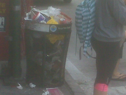 By 2:00 pm trash cans around the city are full. I genuinely believe there are millions of people who consciously choose not to litter. However, if you’re out and about, even if you want to throw trash in a can, your options are limited. You may see one or two every other block – in some neighborhoods – but by dusk (if not before) trash cans around the city are overflowing w/ garbage.